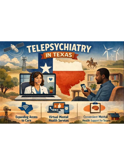 All appointments are conducted via a secure, confidential, and HIPAA compliant telehealth platform, allowing individuals anywhere in Texas to access high-quality psychiatric care from the comfort and privacy of their own homes. This approach makes professional psychiatric support more accessible while maintaining the same standard of care as in-person visits.